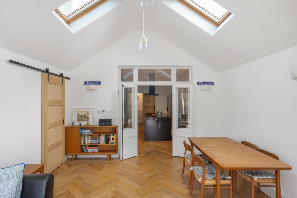 A significant loft extension creates an impressive top-floor retreat, conceived as a studio-style space to provide visiting guests with a sense of independence. This level comprises a generous double bedroom, a sleek bathroom, and a versatile additional room currently arranged as a reception area, equally suited as a bedroom, studio or workspace, and enhanced by a kitchenette. There is also a cleverly designed “secret” play area tucked within the loft space, a delightful feature that will particularly appeal to families.