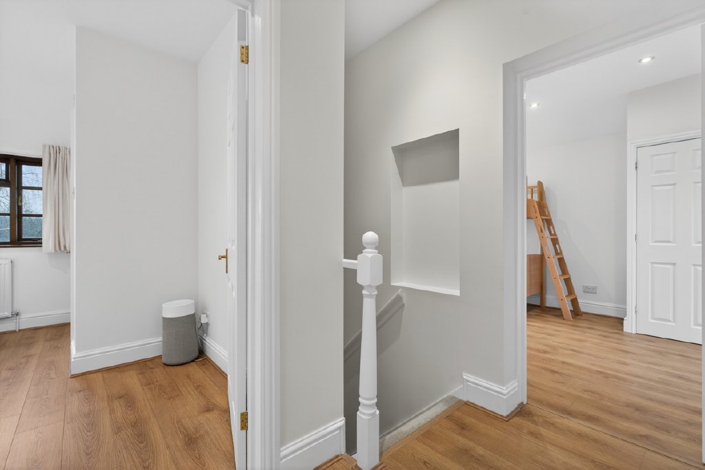 Stairs rise from the entrance hall to three well-proportioned bedrooms.