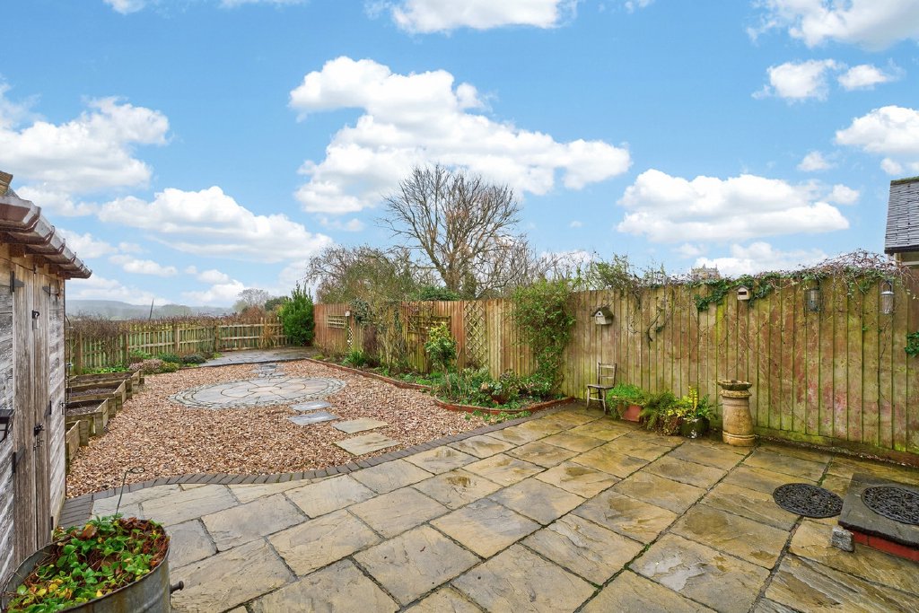 The landscaped garden has been thoughtfully arranged with raised flower beds, mature borders and patio terraces, creating a peaceful and scenic setting for both relaxation and entertaining.