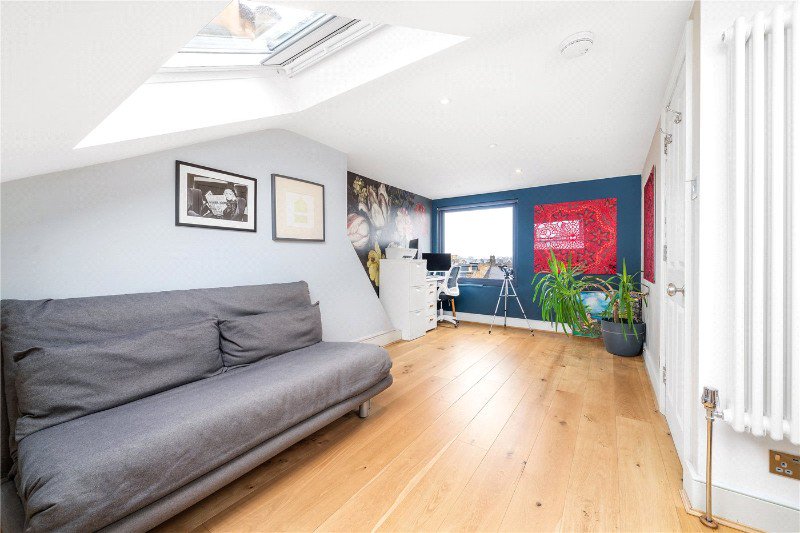 The first floor provides three beautifully proportioned bedrooms, including an impressive principal bedroom to the front, along with a superb family bathroom finished with a freestanding bath, separate walk-in shower and timeless detailing. The second floor is dedicated to a generous loft-converted bedroom suite extending over 17 ft, offering excellent storage and served by a stylish contemporary shower room, creating a tranquil and private retreat.