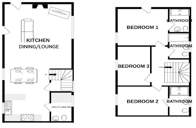 The ground floor offers an impressive open-plan living space, creating a bright and welcoming environment ideal for both everyday living and entertaining. Upstairs, the property provides three well-proportioned bedrooms, each complemented by its own bathroom, delivering comfort, privacy, and flexibility for family living or hosting guests.