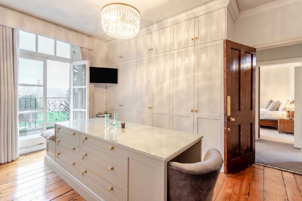 On the first floor there is a superb main bedroom suite with a spacious bedroom with access onto the balcony, a beautiful dressing room with bespoke fitted wardrobes and a central island with fitted cupboards and again doors onto the balcony, an en suite shower room and separate bathroom. There are a further two en suite double bedrooms and a further double bedroom/office. On the second floor are three double bedrooms, a study and a wet room.