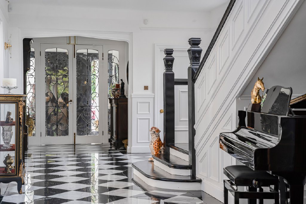 The approach to the house immediately sets the tone, revealing a home of quiet grandeur and timeless appeal. The spacious entrance hall is a statement in itself, showcasing striking chequered stone flooring, a sweeping open staircase and elegant stained-glass detailing, all combining to create a memorable first impression.