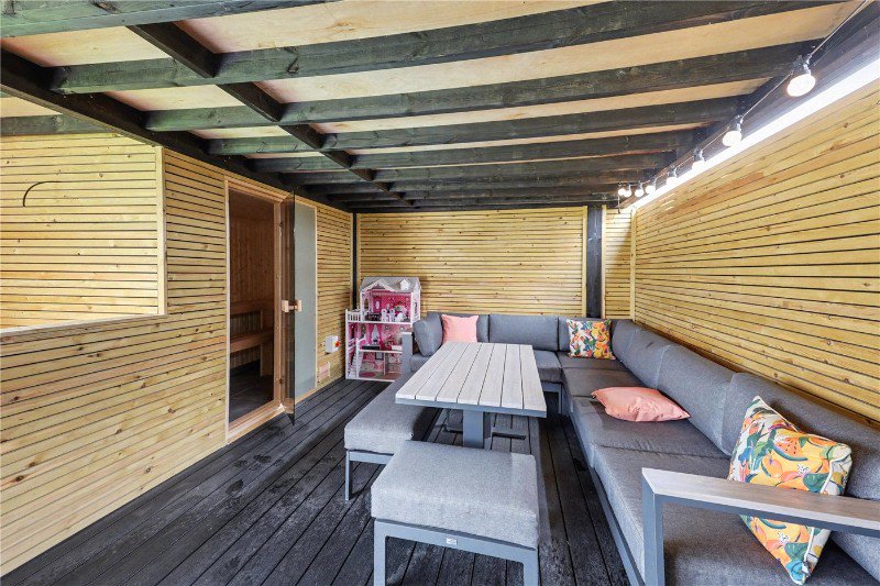 - Sheltered seating area & home sauna