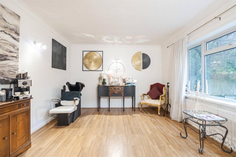 Beyond the breakfast area is a utility room with appliance space, door to the rear garden, and door to a large studio/games room (with door to the garage).