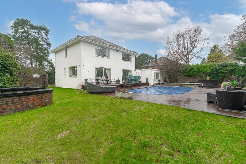 There is access at the side of the house to the private, enclosed semi-walled rear garden which is immediately adjacent to Cannon Hill plantation. Next to the house there is a split level timber sun deck with inset heated swimming pool. There is also a brick built changing room with shower, WC and wash basin. A further entertaining area includes an outside kitchen/barbecue, ideal for al fresco dining.