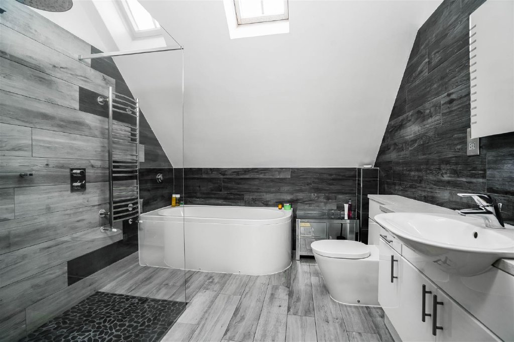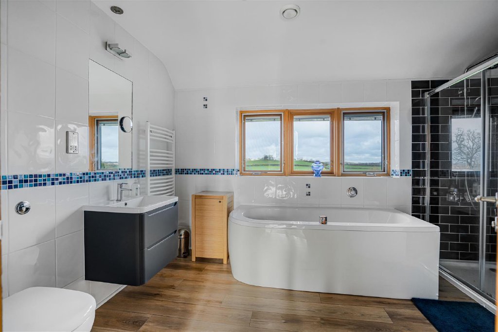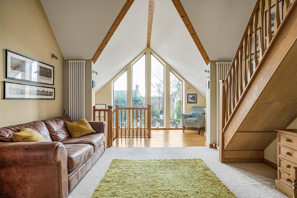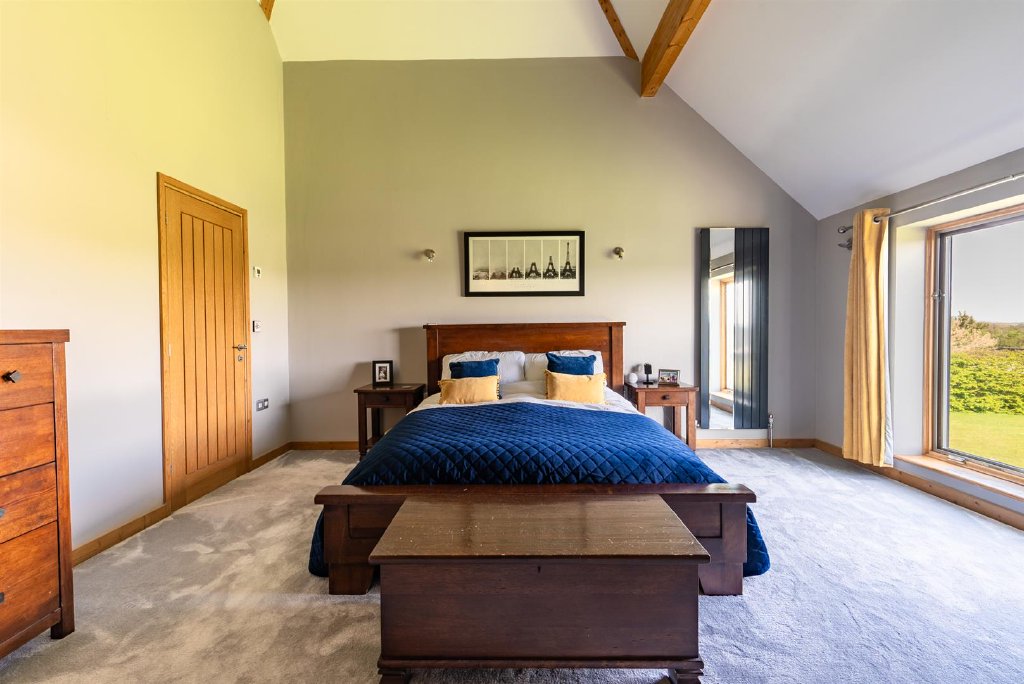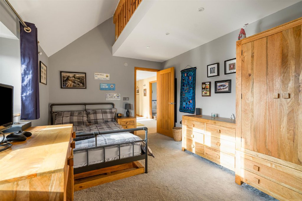 The first floor offers a superb principal bedroom with a vaulted ceiling and an en suite bathroom.
