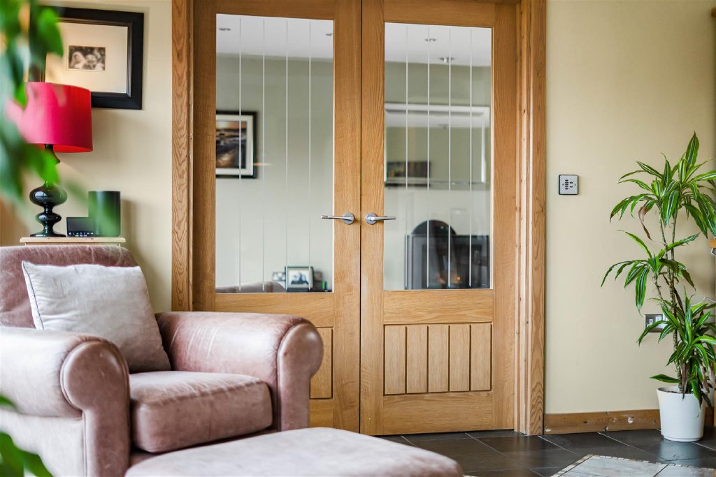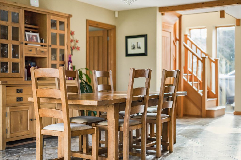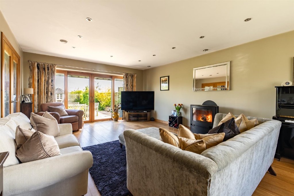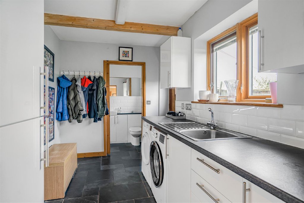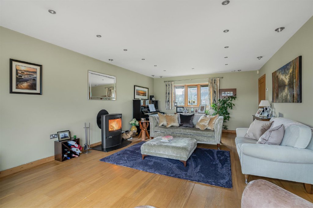 From here there is access to a useful utility room and guest WC. Leading on to the dining room with doors opening out on to the rear garden and the sitting room enjoys the same views to the rear and a snug/study completes the ground floor.