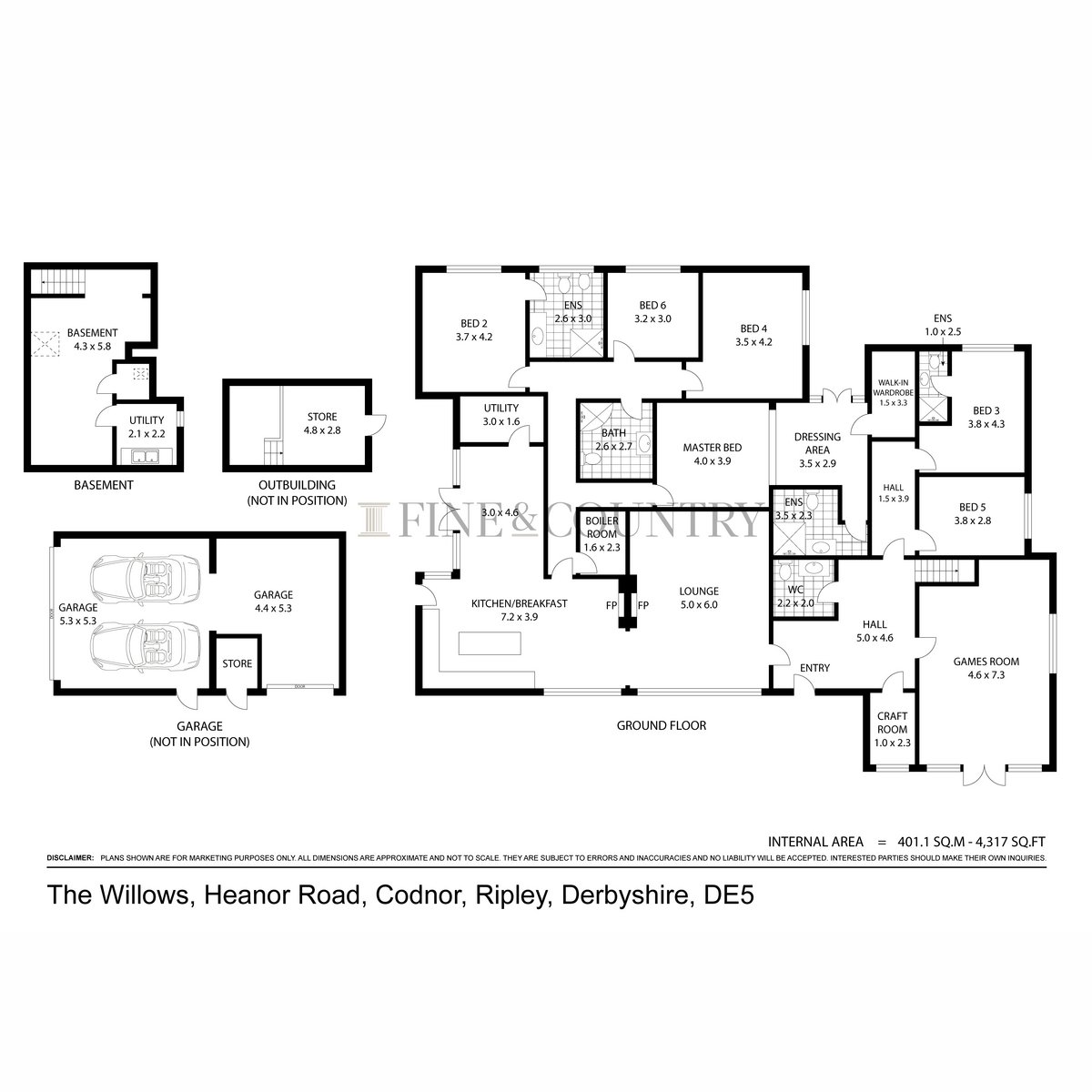 Parking: Triple Garage, alongside five additional parking spaces.