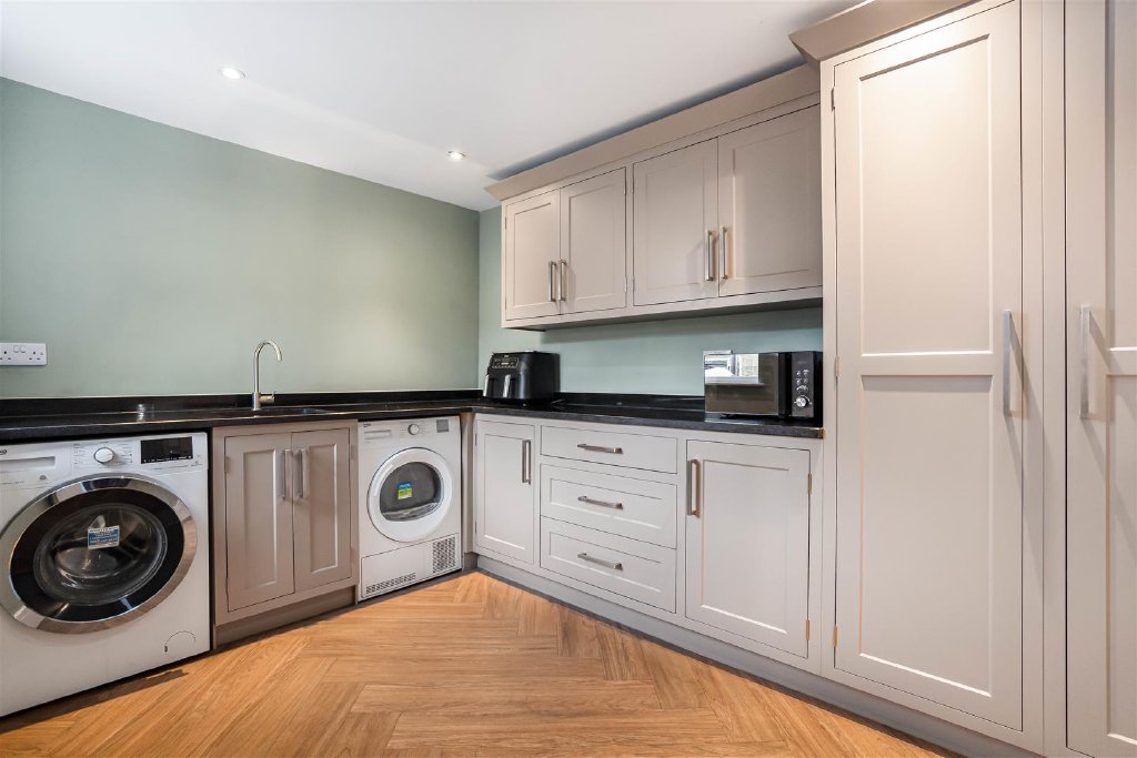 Practicality has been equally well considered, with a separate study ideal for home working. A dedicated utility/laundry room with a door to the side ensures everyday functionality, matching the home's aesthetic appeal.