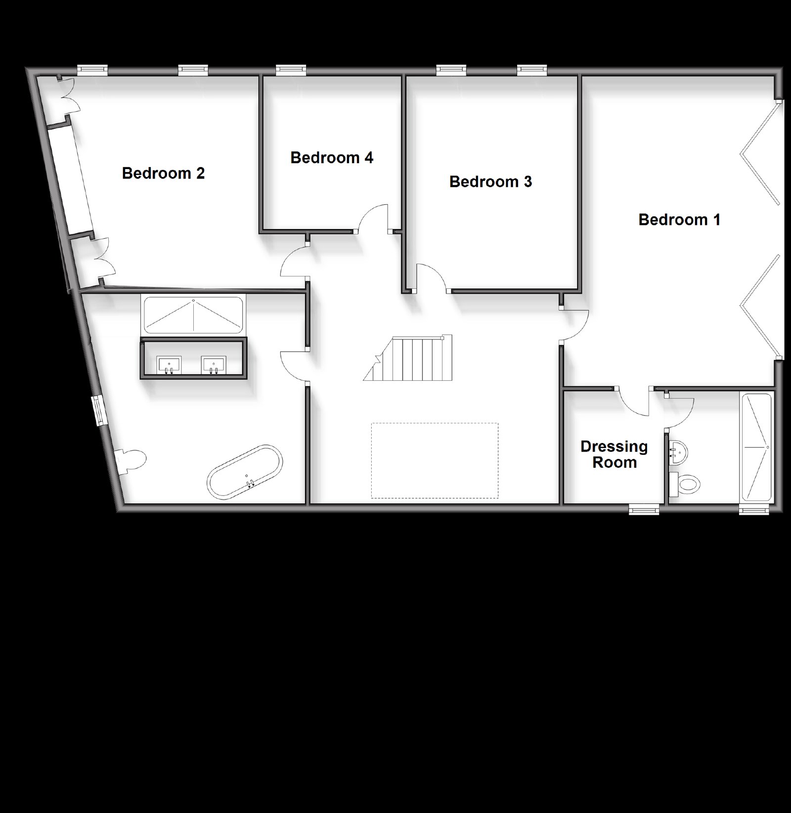 The first floor offers four generous double bedrooms. One of which is a sanctuary of luxury, featuring a dressing room, a spa inspired en-suite shower room and Juliet balconies that welcome the morning light and garden views.