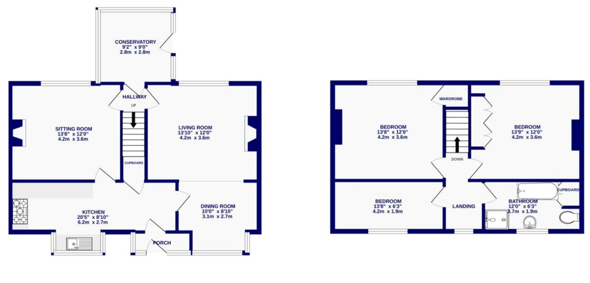 To the first floor are three well-proportioned bedrooms, served by a spacious four-piece bathroom. The rooms are light, comfortable and enjoy pleasant outlooks over the surrounding gardens.