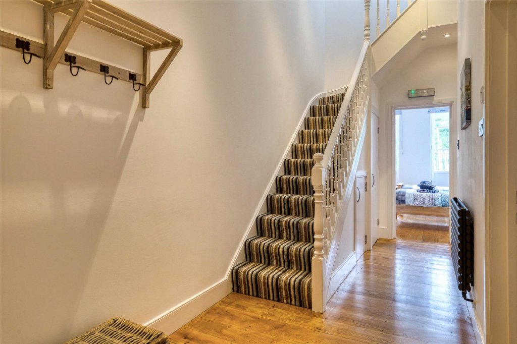 The attractive staircase with its ornate spindle balustrade continues up to the second floor. There are two further large bedrooms with the space exaggerated further by high beamed vaulted ceilings in both rooms. As with the bedrooms on the floor below, two pairs of French doors in each room forms Juliet balconies and again enjoys the ever changing harbour side views. There are period features throughout the property and in bedroom 3 there is an ornamental cast iron fireplace with a marble surround and mantle over. This floor amounts to 38m2 (404ft2).