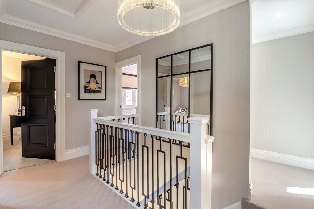 The kitchen/breakfast room has been thoughtfully reconfigured to create a sociable heart of the home, fitted with an extensive range of wall and base units, Quartz work surfaces and a central island. Integrated appliances include a Neff oven, Aga four oven range, integrated fridge/freezer and two Bosch dishwashers, offering both practicality and style. A separate utility room provides additional storage and appliance space, with fitted units and a Velux skylight, while a boot room with external access offers further convenience for busy family life A well-positioned cloakroom completes the ground floor and the stylish staircase takes you to the first floor.