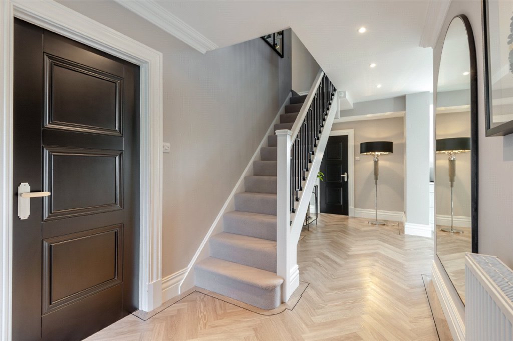 The approach is immediately impressive, with a newly laid driveway and rendered exterior enhancing the attractive façade. An open plan entrance hall with Karndean wood effect flooring and panelled front door sets the tone for the quality found throughout.