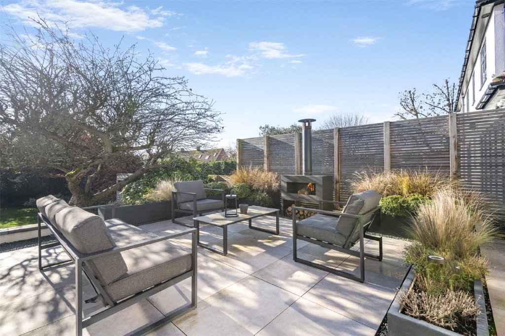 . The outside had a similar make-over, rendering the exterior and adding a new driveway and patio, enhancing the house’s appearance from the moment you arrive. The patio is zoned for cooking, dining and relaxing around the firepit, and the south-facing garden is a true sun trap all day long, all year round.