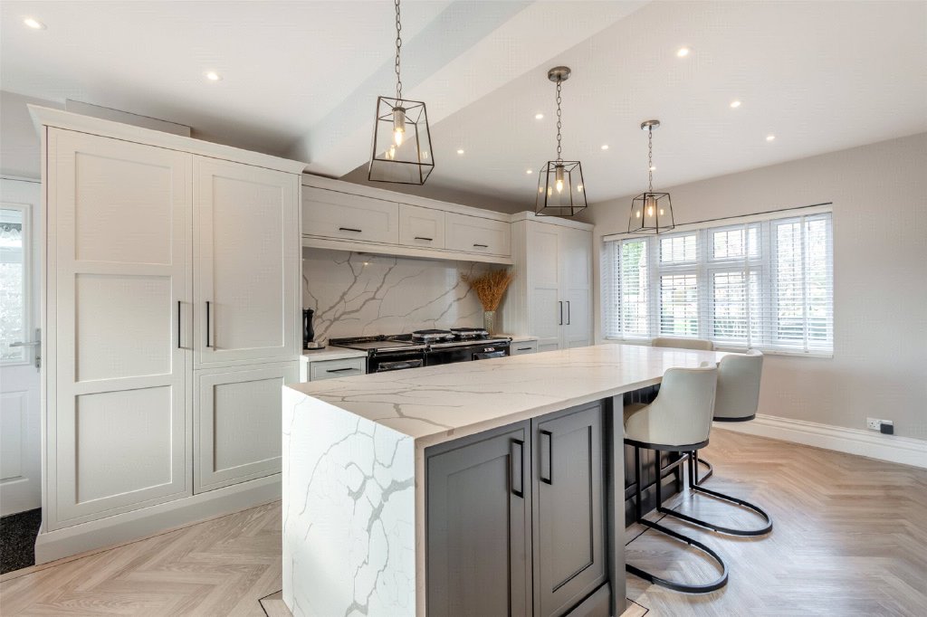 We undertook a full renovation from top to bottom, from rewiring, plumbing, and heating, to a beautiful new kitchen, bathrooms and ensuites with high-end fittings. Inside, the house was redecorated throughout to an immaculate finish and every detail was carefully considered, resulting in a relaxed home that is easy to live in every single day. Upstairs, our favourite space is the master suite – generously sized, with a spacious ensuite and a cleverly screened dressing area offering excellent storage. It feels like a private retreat at the end of the day. Downstairs, we reconfigured the layout to create a more open-plan living space in which to cook, eat and spend time with family and friends. This transformation has made the ground floor wonderfully sociable and bright, opening onto the south-facing garden to allow the light to pour in and create an easy flow between indoors and out.