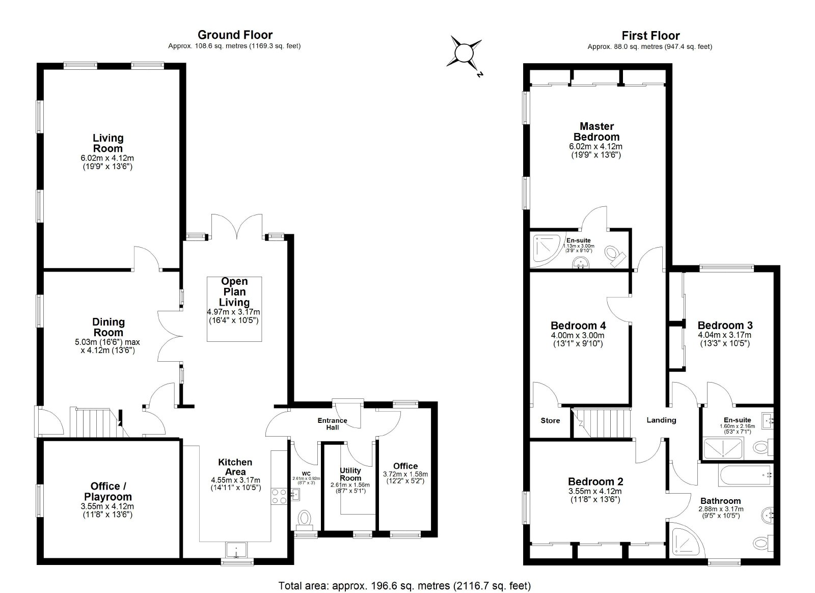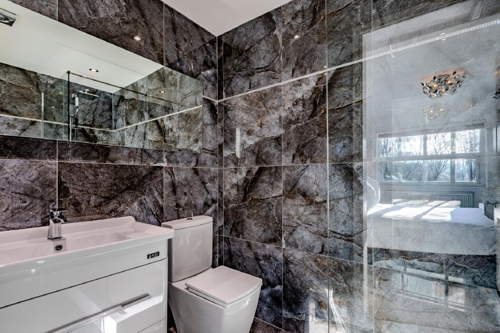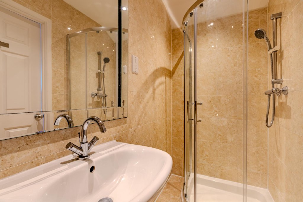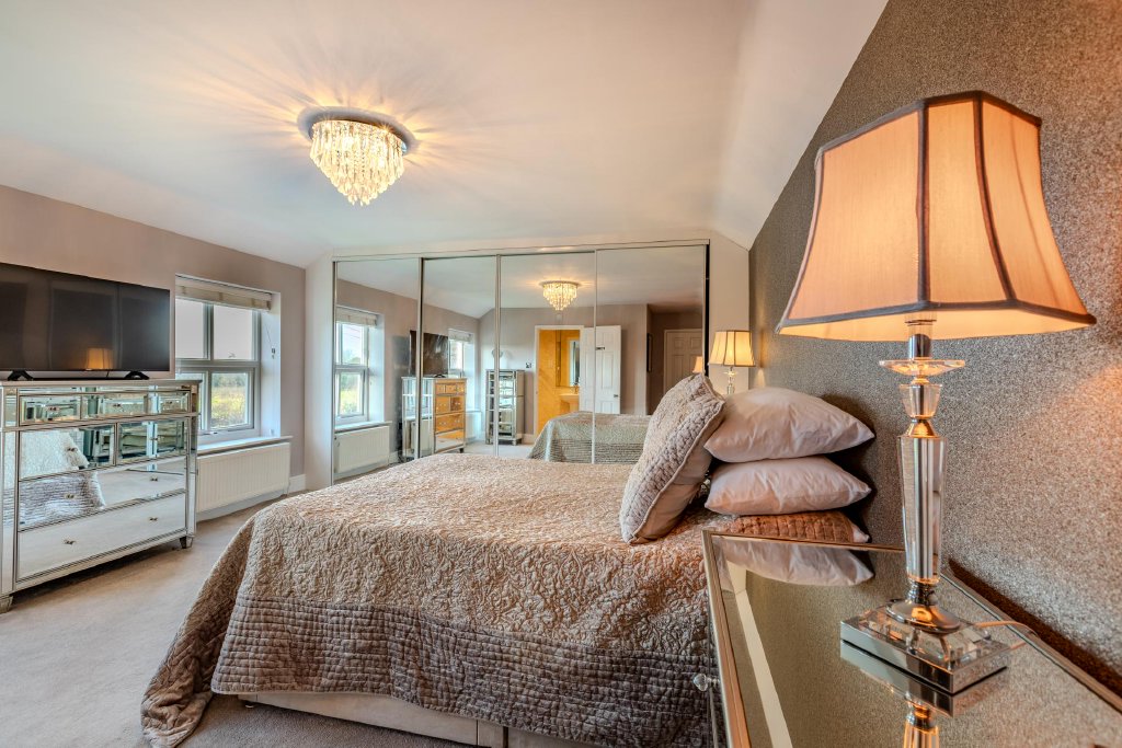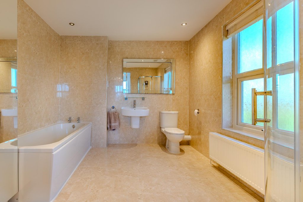 To the first floor are four well-appointed double bedrooms. The principal suite benefits from modern en-suite facilities, while a third bedroom also enjoys its own en-suite. The second bedroom offers direct access to the family bathroom, which is finished to a contemporary standard and features both bath and separate shower, creating a light and airy retreat.