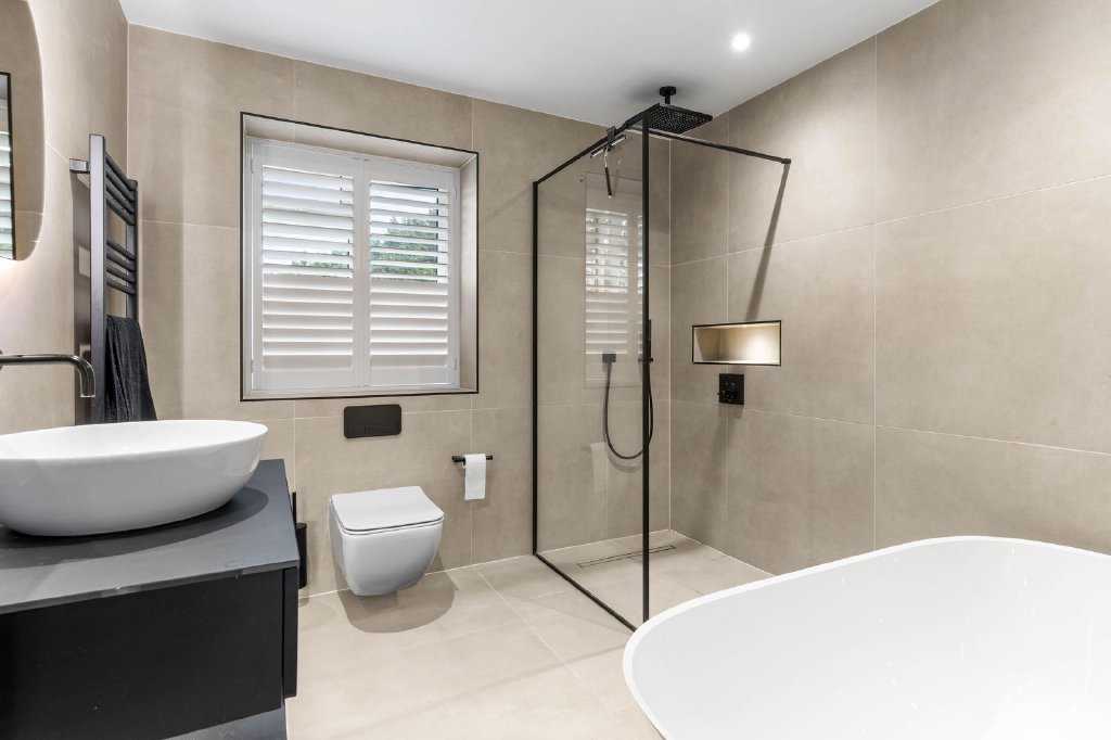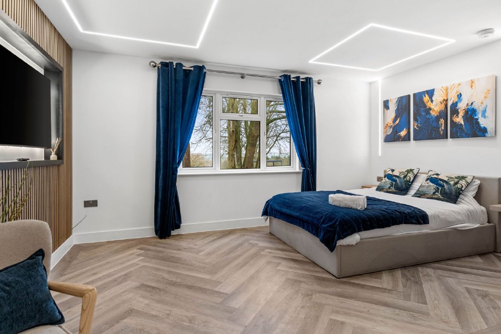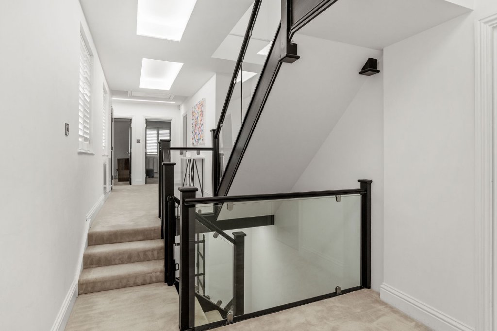 Ascending to the first floor via a striking timber staircase with glazed balustrades, the principal bedroom suite provides a luxurious and private retreat. This superb space features two walk-in dressing rooms and a beautifully appointed en-suite bathroom fitted with Villeroy & Boch sanitaryware, offering both elegance and comfort. This level also hosts four further generously proportioned bedrooms one with an additional en-suite and a stylish family bathroom.