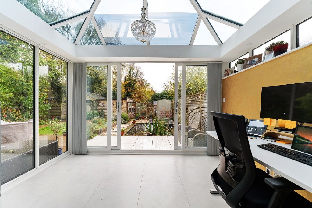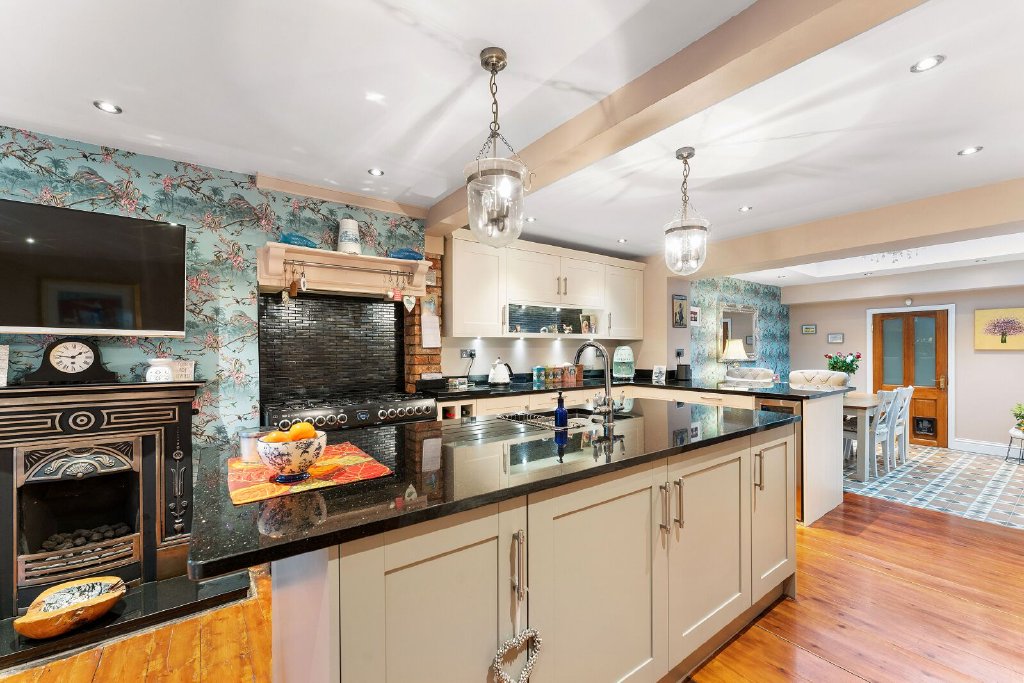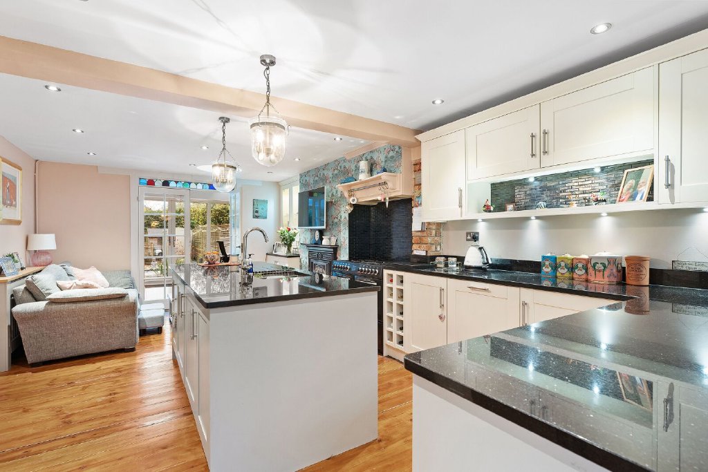 Ground Floor Accommodation The property is accessed via the garden with a pathway leading to a covered porch and a part-glazed door opening onto an inner lobby with a large window making this area a bright space. Doors open onto the main sitting room with a dual aspect and a lovely brick Inglenook fireplace with open fire. From the inner lobby a further hallway has a turned staircase to the first floor and a door to a stunning kitchen/breakfast and family room with the kitchen being fitted with a good range of wall and base units and central island with contrasting granite worksurfaces, integrated appliances and a range cooker, wood flooring with underfloor heating. There is a feature fireplace to the family area and French doors to the conservatory, which is currently being used as office space by the current owner. The breakfast area is towards the rear of the kitchen with a step down and a lovely traditional tiled floor, skylight and large bi-fold doors to a courtyard, making this room extremely bright and airy. A further door opens onto a fully fitted utility/boot room and leads through to a games/entertaining room with French doors to the courtyard. A downstairs bathroom completes this floor.