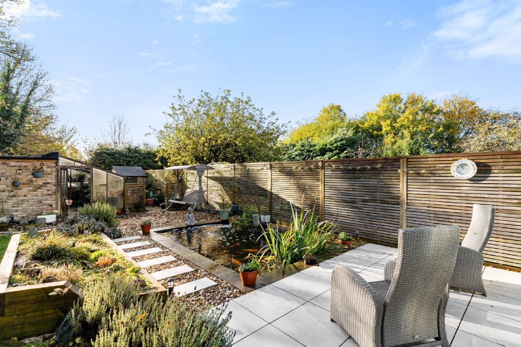 Outside There is covered parking for 3/4 vehicles and a detached garage with electric rolled door. Gated access opens onto the private, south facing garden with a pathway leading to the front door and the remainder of the garden is laid to lawn with a lovely terraced area ideal for entertaining that also has an ornamental pond and raised flower beds and there is a greenhouse. There is also a seating area to the rear of the property, immediately outside the kitchen/breakfast room.