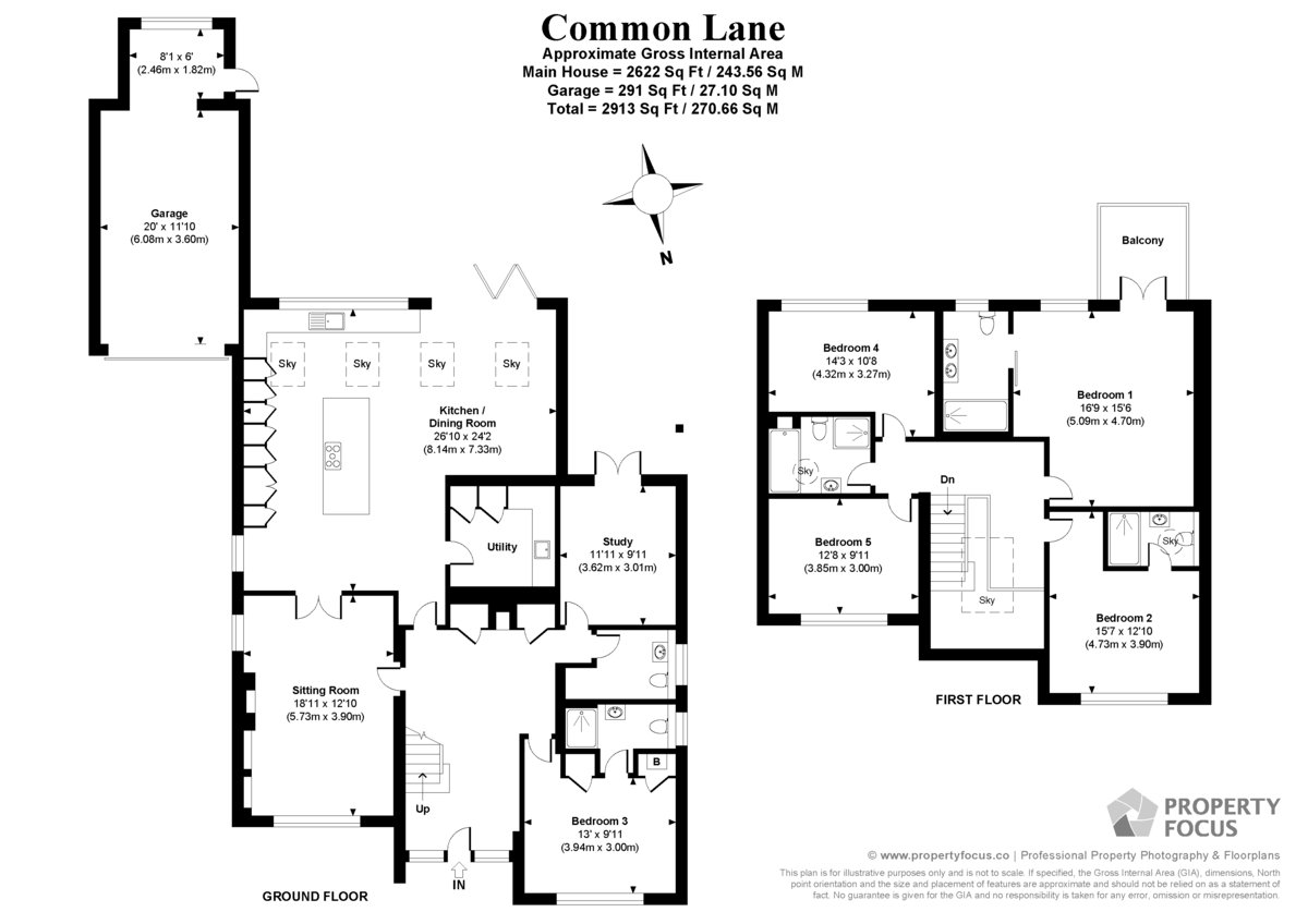 PROPERTY SUMMARY An excellent opportunity to purchase an outstanding extended and modernised detached family home which provides 2913 sq ft of living space arranged over two floors, set back from the road behind a high hedge with front garden and 86' long driveway leading to a detached garage. The house has been extended to provide versatile living space for the growing family or those requiring space for an elderly relative. The living space comprises: hallway with Juliette balcony over, sitting room, 26' open plan kitchen incorporating the dining and family area with bi-folding doors leading to rear garden, there is also a separate utility room, study, cloakroom and bedroom with en-suite shower room on the ground floor. On the first floor are four double bedrooms, two with en-suite shower rooms and a family bathroom, from the master bedroom are doors leading to a roof top balcony which has far reaching views fields towards the Solent and Isle of Wight in the distance. The village of Titchfield sits at the western side of Fareham and although it is three miles inland from the sea it was an important Medieval market town and port, it is now a conservation area and the streets have many historic buildings with shops, pubs and houses set around a large square.