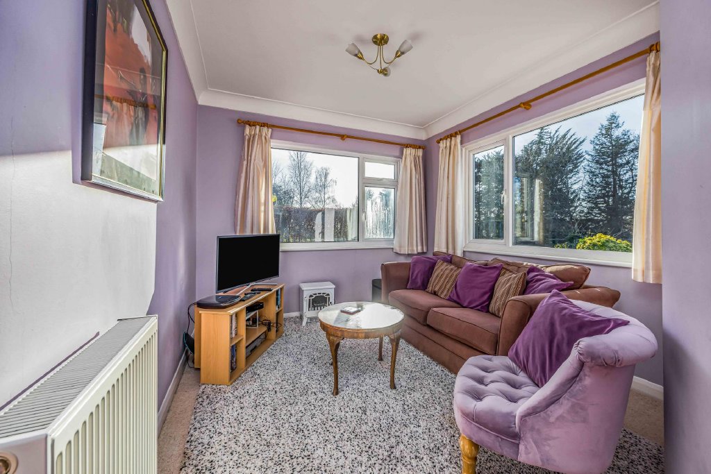 LIVING ROOM 11' 11" x 8' 10" (3.63m x 2.69m) Dual aspect double glazed windows to front and side aspects overlooking garden and paddock with far reaching views in both directions, radiator, ceiling coving.