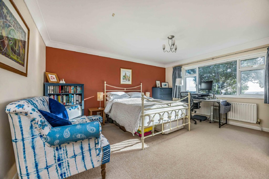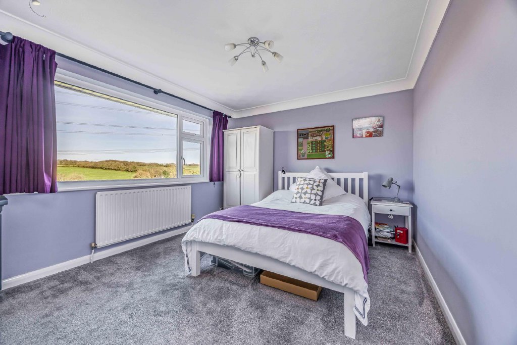 BEDROOM 1 17' 10" x 11' 11" (5.44m x 3.63m) Twin double glazed windows to front aspect with outstanding views over paddock, farmland and woodland beyond, two radiators, ceiling coving.