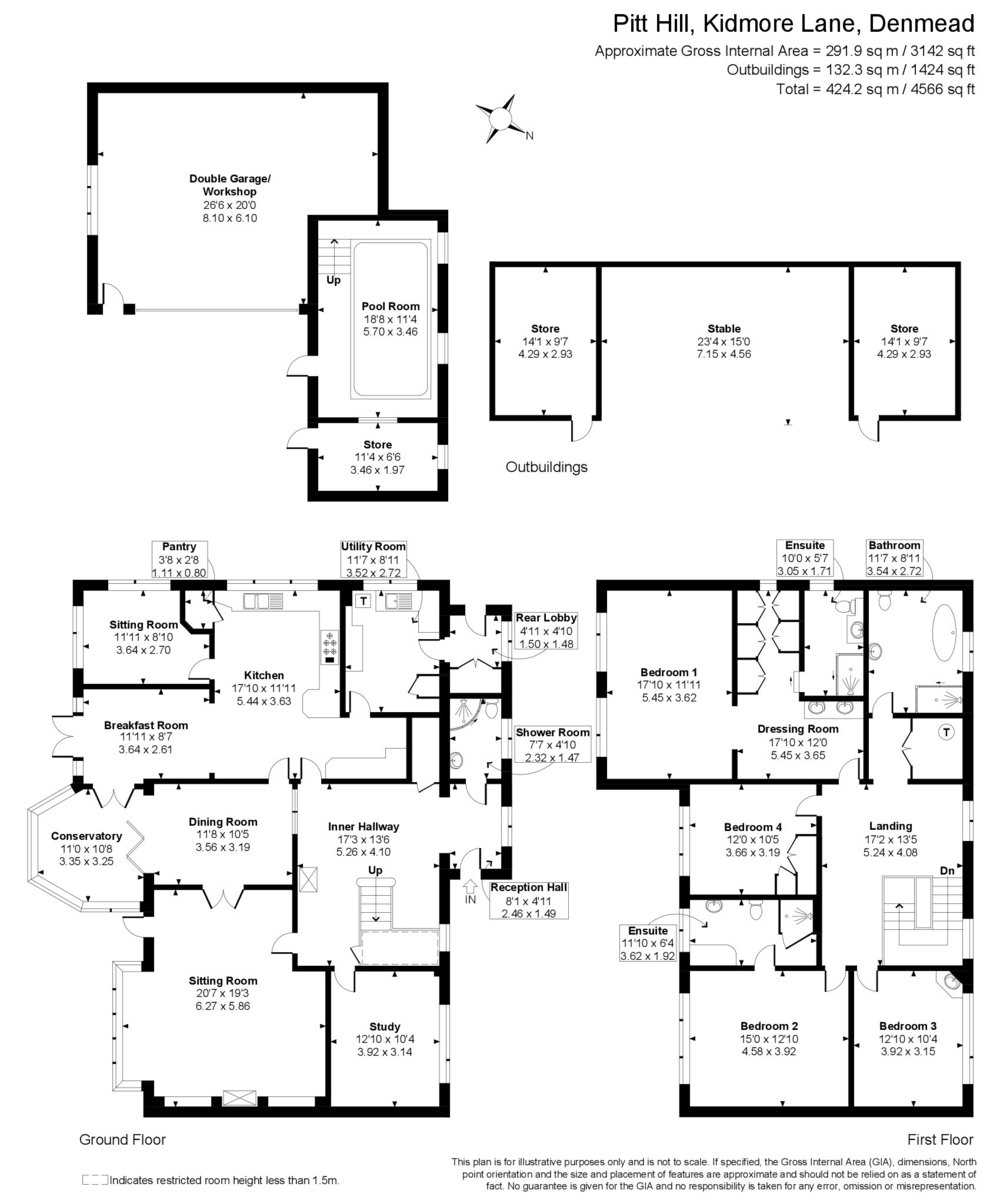 PROPERTY SUMMARY Pitt Hill is a detached family home which is situated within the South Downs National Park at the top of the hill with outstanding panoramic views on all aspects, it is set back from the road on a plot extending 1.62 acres with outbuildings extending 1378 sq ft incorporating stabling, garaging, storeroom and a pool room. The house itself provides 3142 sq ft of living space with six reception rooms, a large hallway, shower room, boot room and 17' kitchen on the ground floor with four double bedrooms, two with en-suites, a separate dressing room and feature family bathroom on the first floor. Situated approximately 1.1 miles to the north of the village of Denmead and approximately 11 miles south of Petersfield with its commutable road and rail links via the A3(M) and mainline to London Waterloo. Denmead has a vibrant community with two schools, Denmead Infant and Junior Schools, a community centre, King George's recreation grounds, where the village cricket, football, tennis and bowls clubs are all based. Approximately 1.8 miles north of Pitt Hill is the historic village of Hambledon, best known as 'The Cradle of Cricket' which has one of the oldest cricket clubs known, which was formed in the 1750's. Early internal viewing of this impressive detached home is strongly recommended in order to appreciate both the accommodation and location on offer.