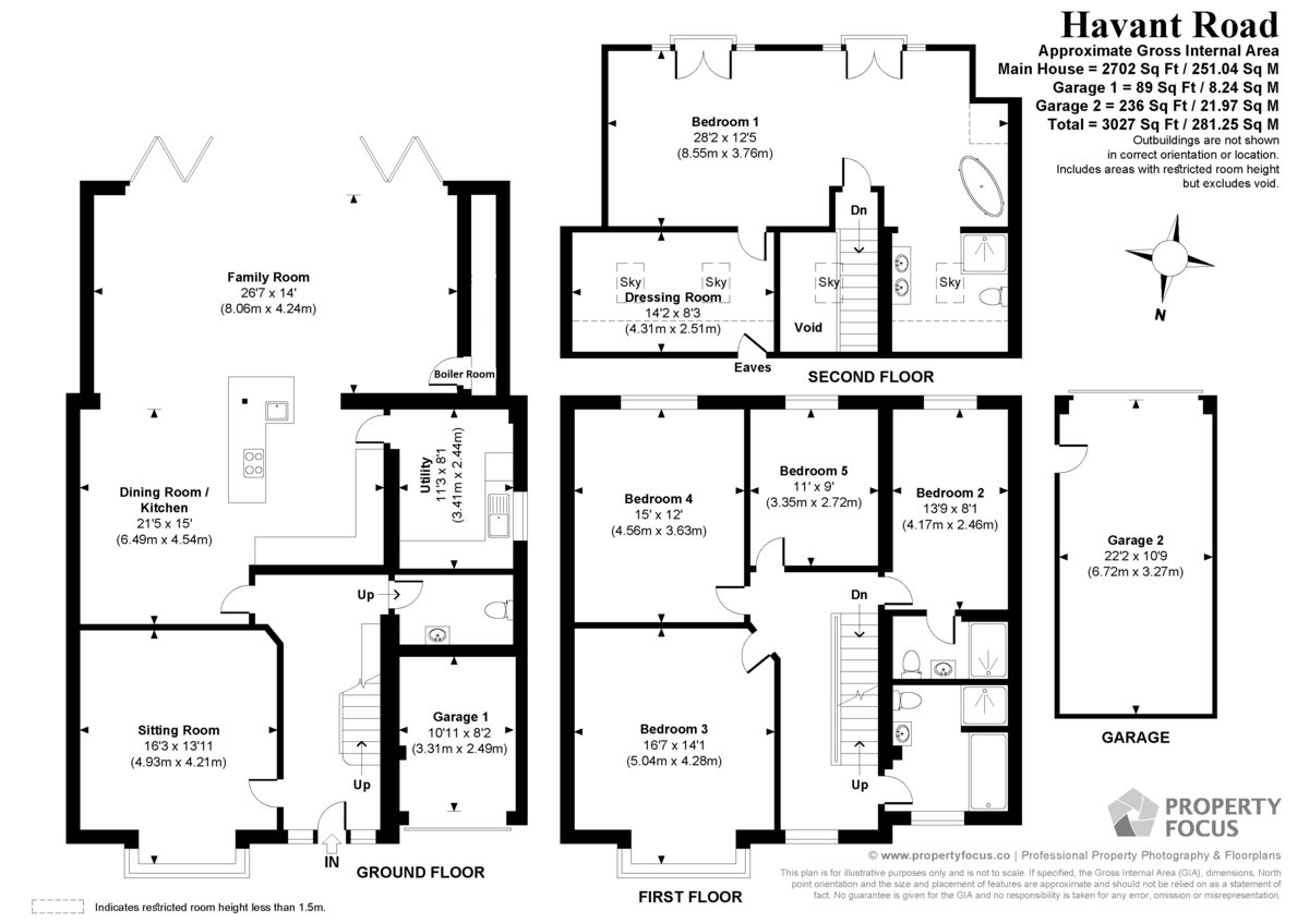PROPERTY SUMMARY If you are looking for a property with the 'wow' factor then look no further. This stunning, extended family home has extensive accommodation with 2702 sq ft of living space arranged over three floors and comprises: hallway, sitting room, integral garage, cloakroom, large utility room and a 29' open plan kitchen/dining room leading to family room with bi-folding doors onto a southerly facing terrace and rear garden. On the first floor are four bedrooms, one with an en-suite shower room and family bathroom, on the top floor is a stunning primary bedroom suite with an open plan layout with an oval double ended bath and separate shower area, dressing room and outstanding panoramic views towards Langstone Harbour and Hayling Island towards the east and towards the City of Portsmouth towards the west. The property also benefits from additional rear hardstanding from a rear service road, garage, double glazing and fitted floor coverings throughout. Located within easy access of local commutable road links, recreation grounds and the catchment for both Solent and Springfield Schools (subject to confirmation), early viewing of this impressive, immaculate home is strongly recommended in order to appreciate not only the accommodation but also the location on offer.