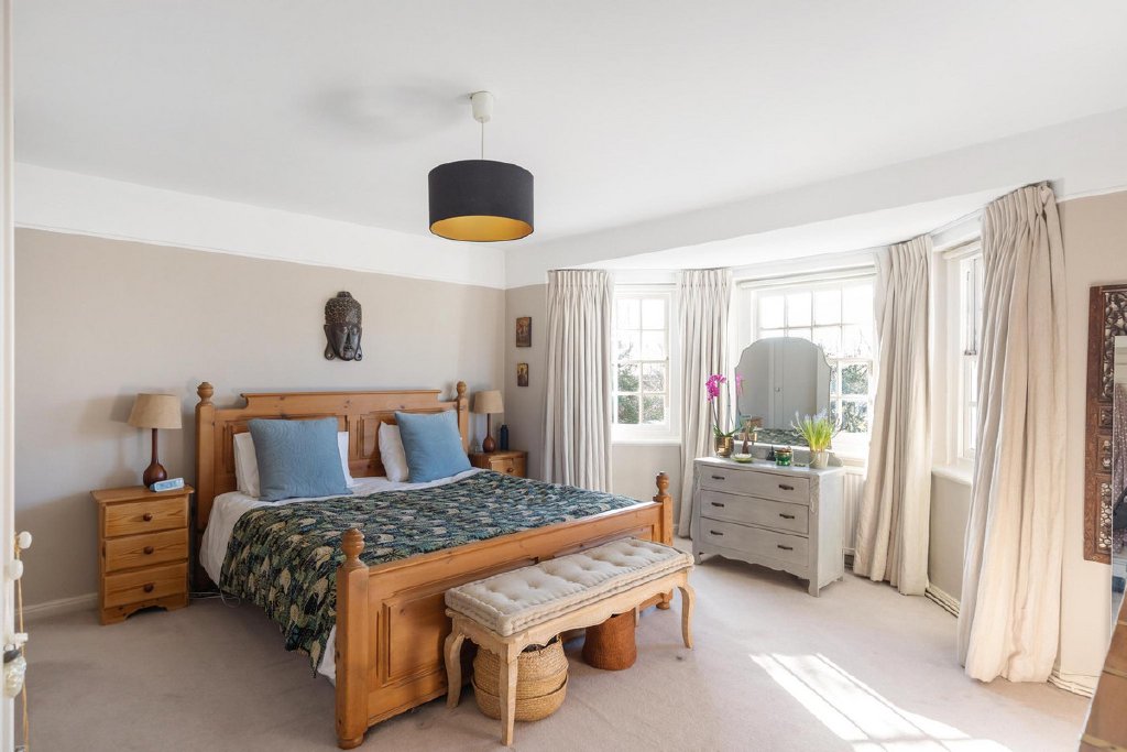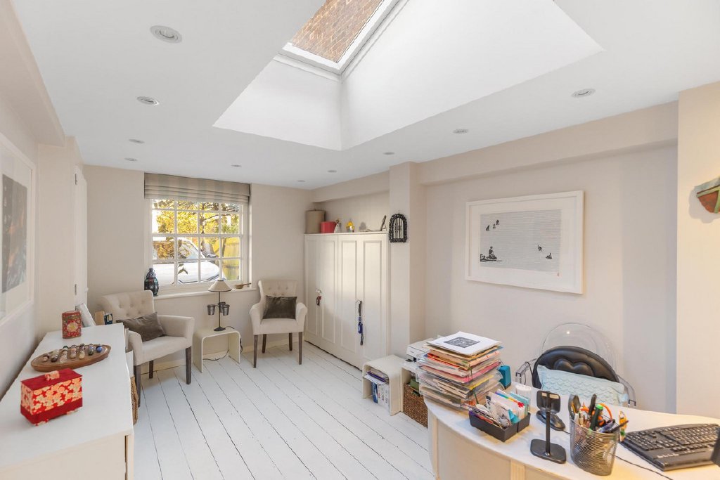 The upper floors provide generous and adaptable accommodation, comprising four double bedrooms, including a principal suite with en-suite shower room, two further bathrooms, a fifth bedroom, and an additional study which could alternatively serve as a dressing room or nursery.