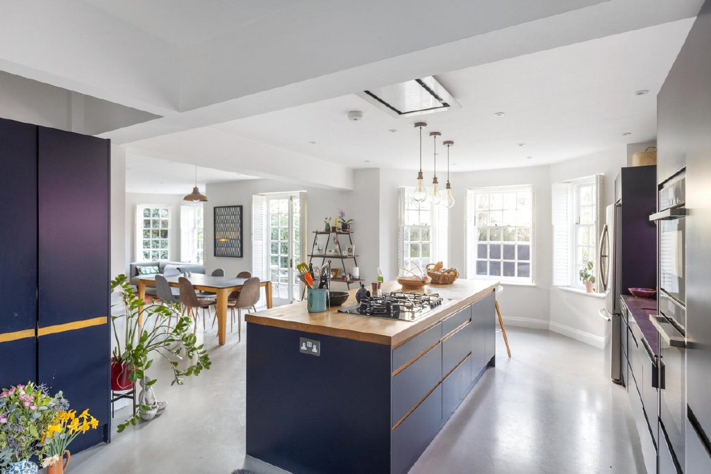 In more recent years, the current owners have thoughtfully extended and enhanced the property, creating a superb family home now arranged over three well-proportioned floors. The ground floor is centred around an impressive 38-foot, full-width kitchen, dining and family room, perfectly positioned to take advantage of the two elegant bay windows and the desirable south-westerly aspect. The bespoke kitchen, complete with a central island and breakfast bar, flows seamlessly into a further, separate reception room, ideal for more formal entertaining or relaxed evenings.