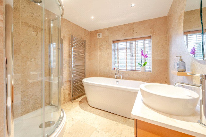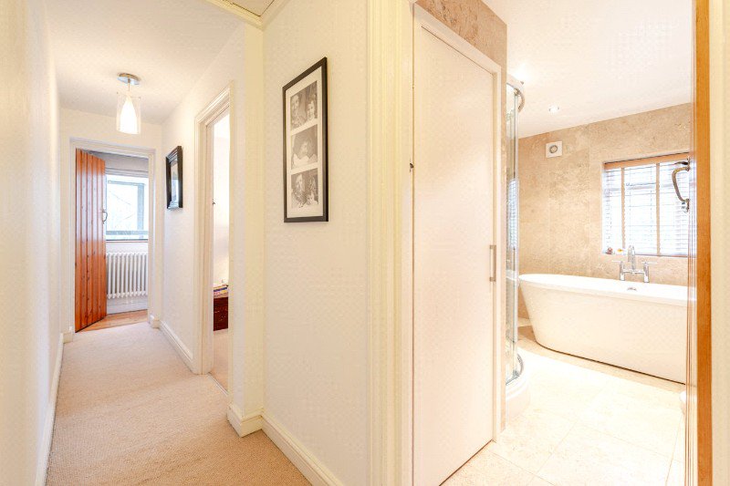 Three further double bedrooms are served by a stylish family bathroom, also upgraded by the current owners with quality sanitaryware and contemporary finishes. The scale and proportions throughout reflect the success of the two-storey extension, creating balanced and versatile accommodation suited equally to family life, guest space or home working.