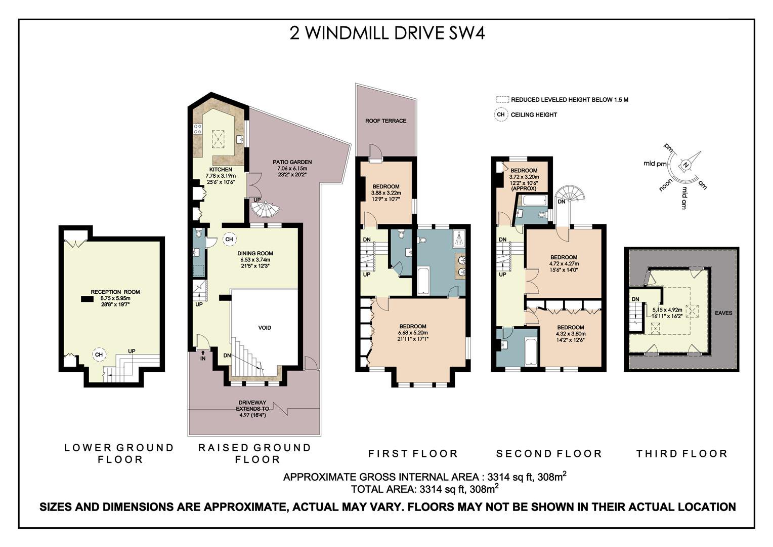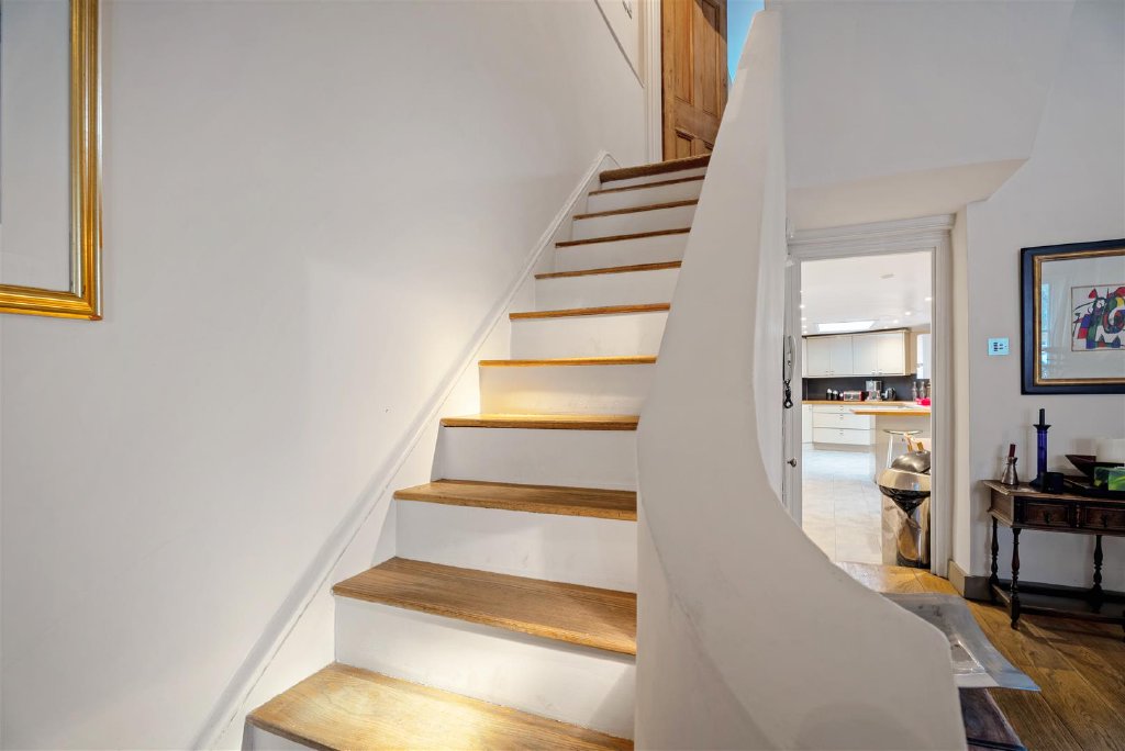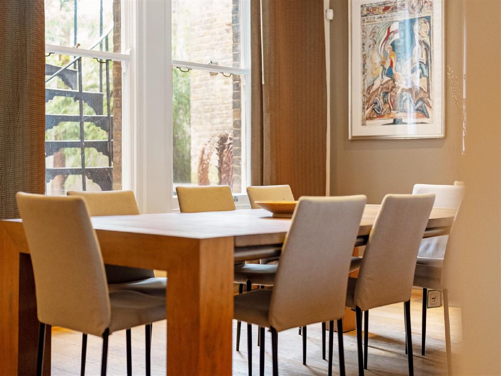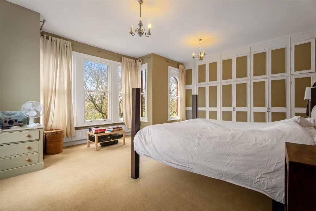 Upstairs - The upper floors provide exceptional bedroom accommodation. The principal suite enjoys a bay window with uninterrupted views across Clapham Common, complemented by a contemporary en suite bathroom and separate WC. Additional bedrooms are generously sized and thoughtfully arranged, including access to a roof terrace, Jack-and-Jill facilities, and flexible spaces well-suited to guests, home offices or staff accommodation.