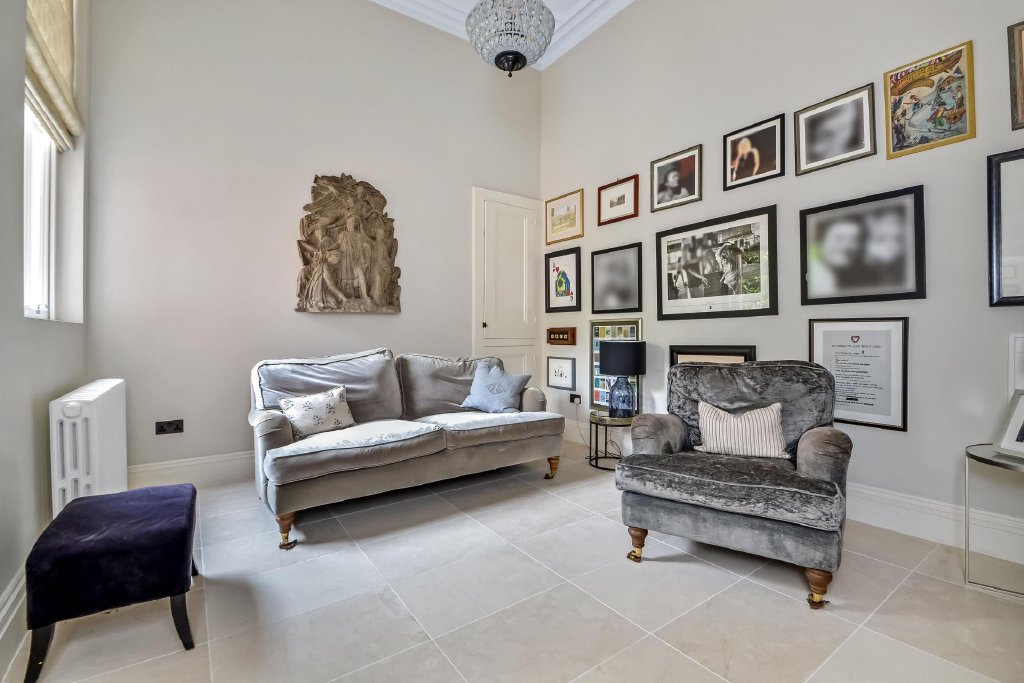 FAMILY ROOM 12' 10" x 11' 6" (3.91m x 3.51m) Ceiling height approximately 12'6". Sash window to rear aspect, tiled flooring, roll top radiator, built-in cupboard to one side of chimney breast with range of shelving, tiled flooring, square opening leading to: