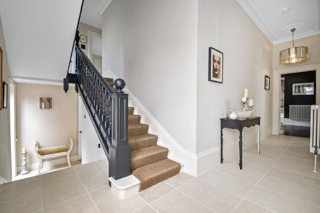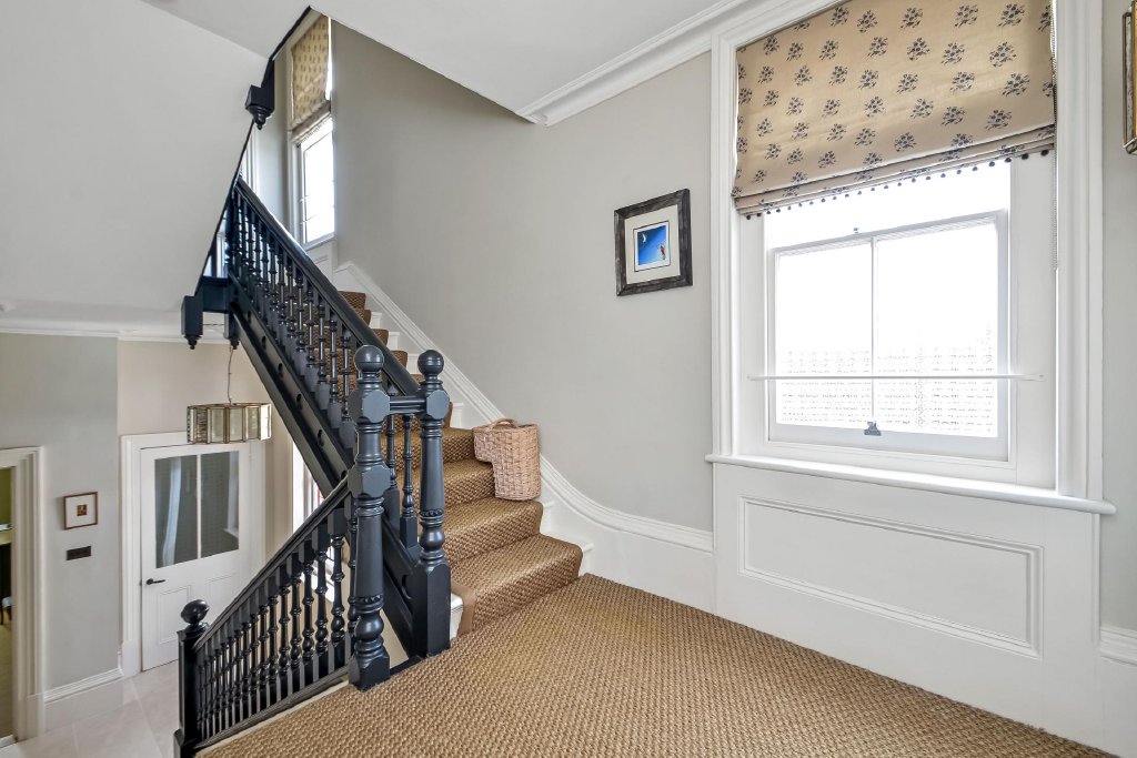 PRIMARY LANDING FRONT WING Easy rise staircase rising to top floor rear, etched glass sash window to side aspect, high skirting boards, roll top radiator, high ceiling, doors to primary rooms.