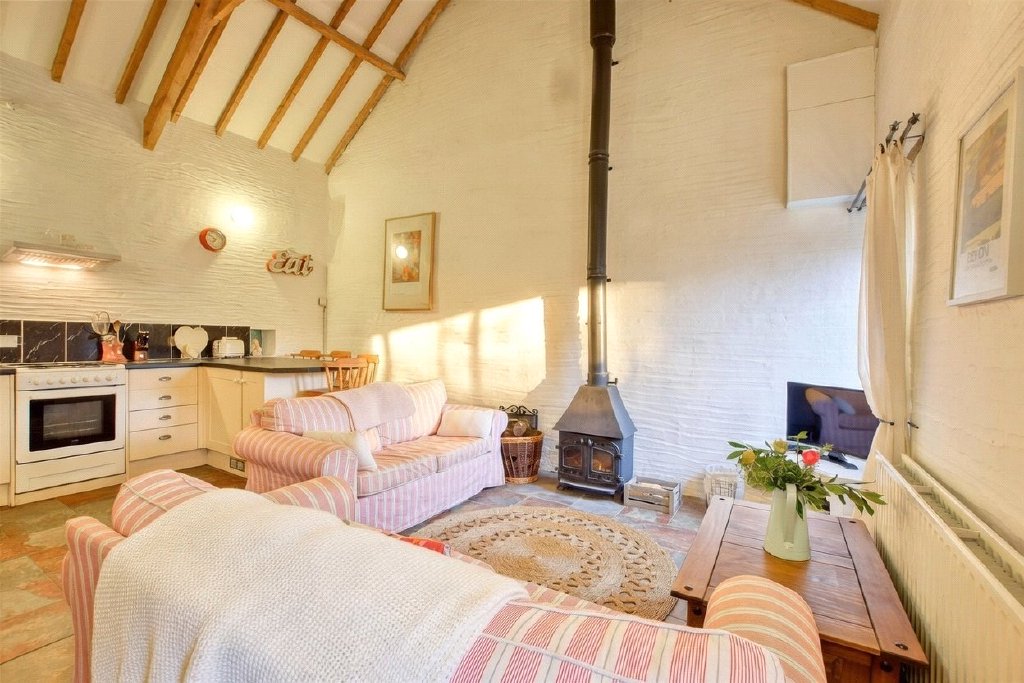 One of the two larger family cottages, Brambley Bottom is arranged to sleep six and is particularly well suited to traditional family holidays. Accommodation includes a large double bedroom and two twin bedrooms, complemented by both a shower room and a separate bathroom (ideal for busy changeover days and larger groups). The sitting room is arranged around the warmth and atmosphere of a wood burner, with generous seating, while the kitchen/dining space is designed around a farmhouse-style table—exactly the sort of layout that encourages longer stays and that “home from home” feel.