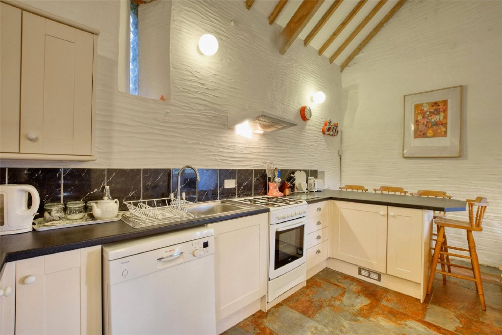 Mill Cottage provides a slightly smaller option within the complex, sleeping four—ideal for couples, smaller families, or guests seeking a quieter bolt-hole while still benefitting from all of the on-site facilities. The cottage offers a double bedroom and twin bedroom, a shower room, a welcoming living area with wood burner, and a kitchen arrangement with a breakfast bar together with a cooker, dishwasher, and full-height fridge/freezer.