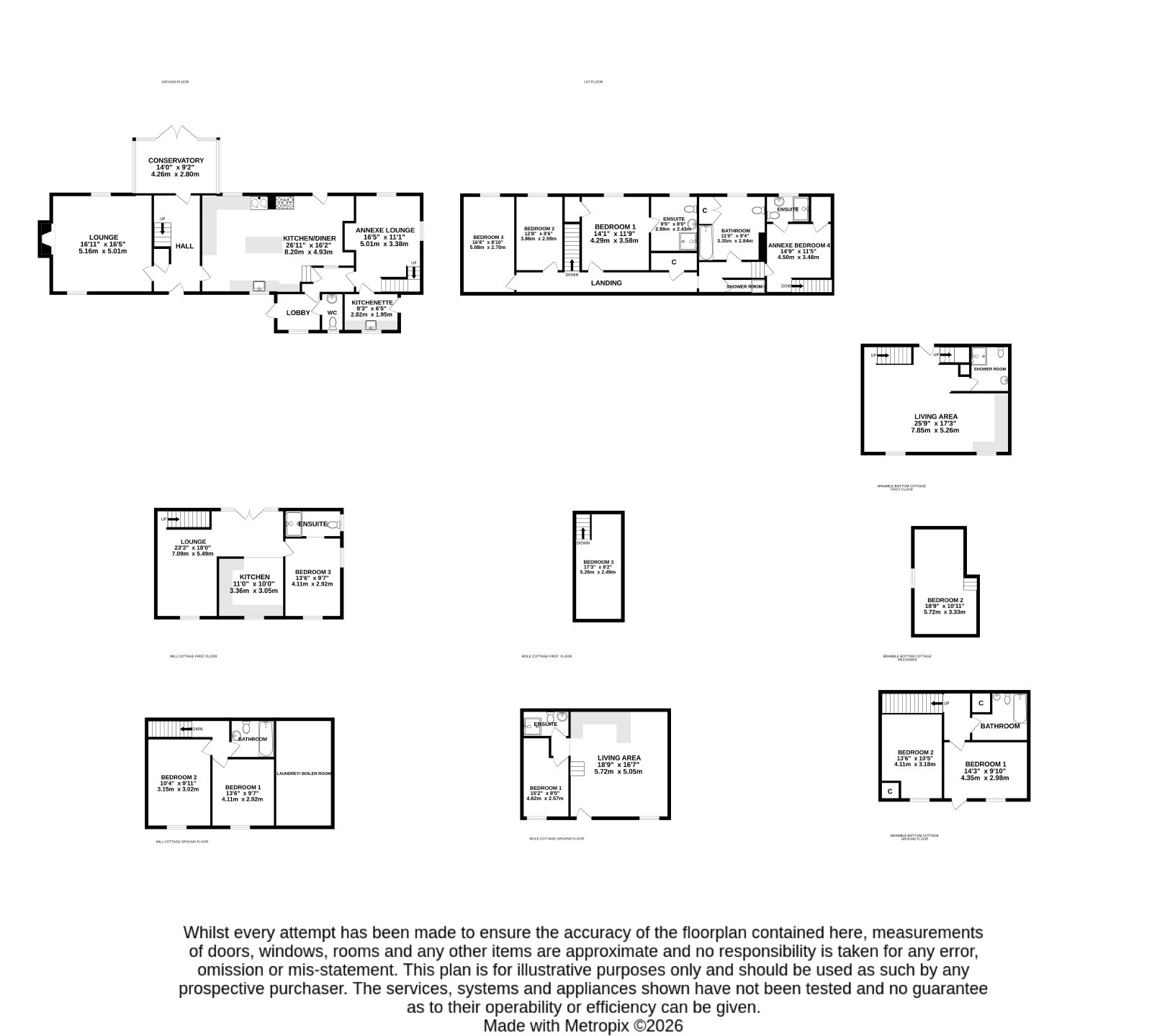 A major highlight is the established and highly regarded holiday letting enterprise, operated successfully for many years. The complex includes three charming four-star self-catering cottages—Bramley Bottom and Mole Cottage (each sleeping six), together with a Mill Cottage (sleeping four)—created from traditional stone buildings including a Victorian stone barn and a watermill.