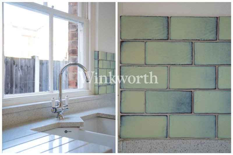 The front reception room welcomes you with a cosy Victorian fireplace and rich wooden flooring, an ideal space to unwind with a book or host intimate gatherings. This flows seamlessly into the dining room and onwards to the modern kitchen, truly the heart of the home. The generously sized kitchen/breakfast room (approximately 14 ft x 8 ft) features sleek lime-green cabinetry, solid white granite worktops, and a tiles floor with underfloor heating, combining style with everyday practicality.