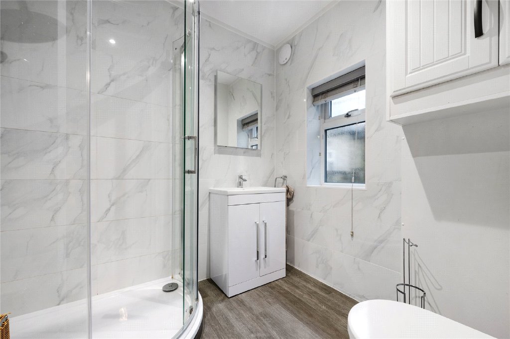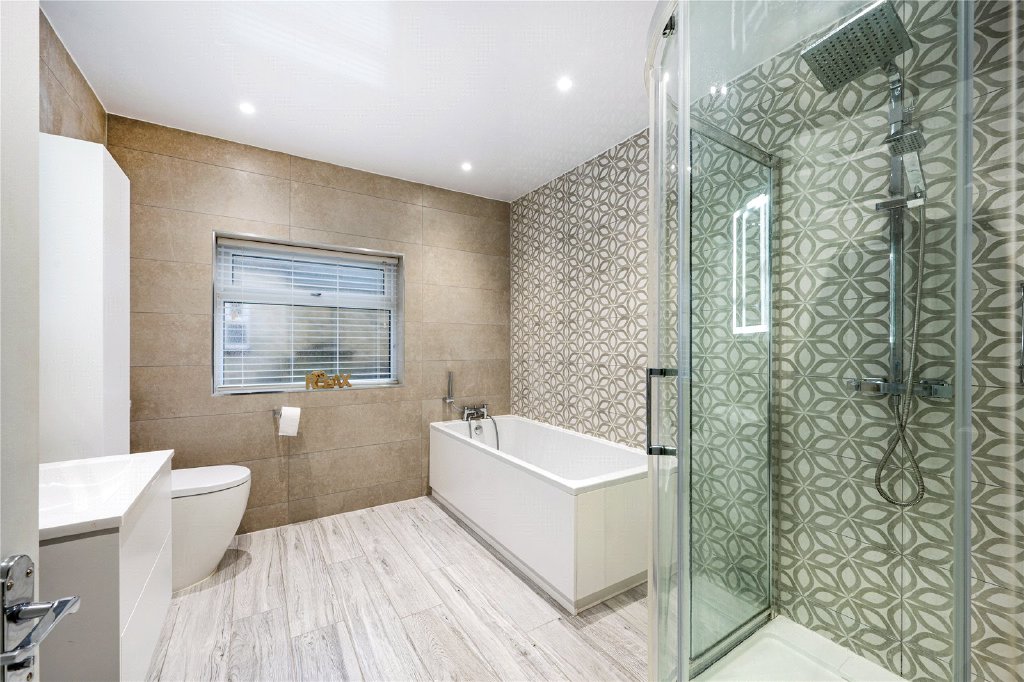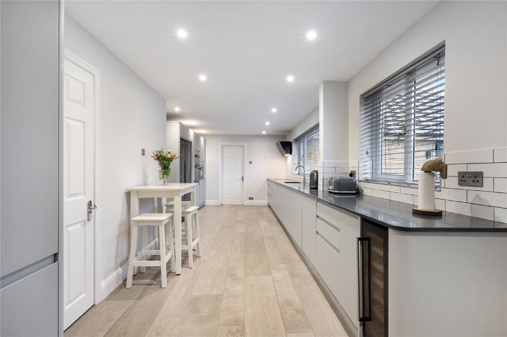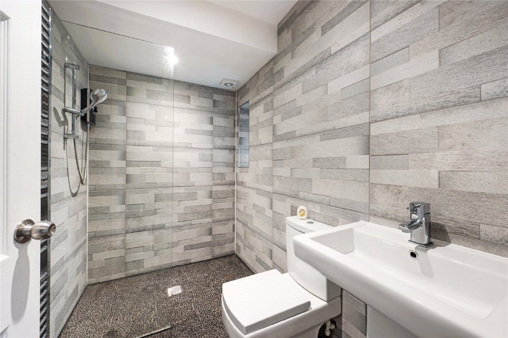The ground floor offers exceptional bedroom accommodation, with six well-proportioned bedrooms, thoughtfully arranged to provide flexibility and privacy. All bedrooms are generous in scale, offering flexibility to create dressing rooms, home offices or hobby rooms if required. The main bedroom has storage and a beautiful en-suite shower room. There are four other bedrooms on this floor, which are all complemented by a house bathroom and one of the bedrooms enjoys sliding doors opening directly onto the garden, creating a wonderful guest suite or teenager’s retreat. In addition, there is another double bedroom with en-suite that is accessed via a staircase descending from the first-floor reception room. This layout lends itself perfectly to use as a private guest suite, au pair accommodation, entertainment room, or an independent living space.