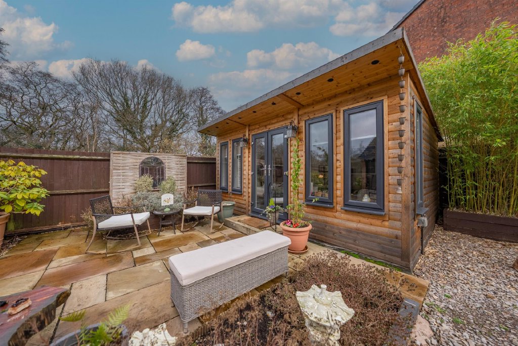 Outside - Occupying a generous plot with a lovely open outlook onto the green, the setting immediately sets this home apart. The frontage benefits from a sense of space rarely found in comparable modern homes. To the rear, the garden provides a private and adaptable outdoor environment suited to both relaxation and entertaining. A true highlight is the beautifully designed outbuilding known as the Zen Den', complete with underfloor heating and double glazing for year-round comfort. Whether used as a garden office, home gym, creative studio or additional retreat, it adds a valuable extension of the living space. The versatility of this structure enhances