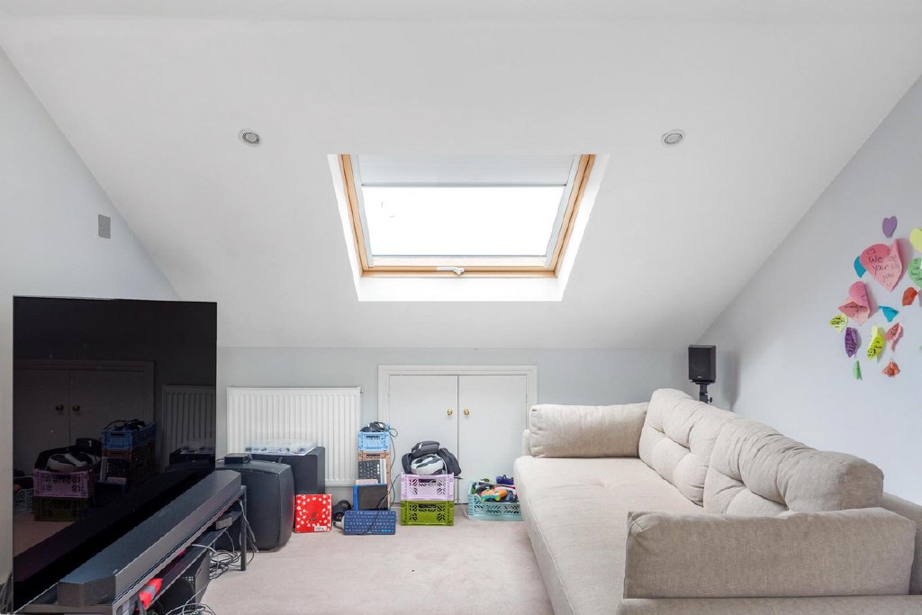 The top floor hosts two further bedrooms, both benefiting from ample eaves storage, along with an additional family bathroom. These rooms are ideal as children’s bedrooms, guest accommodation, or home office space.