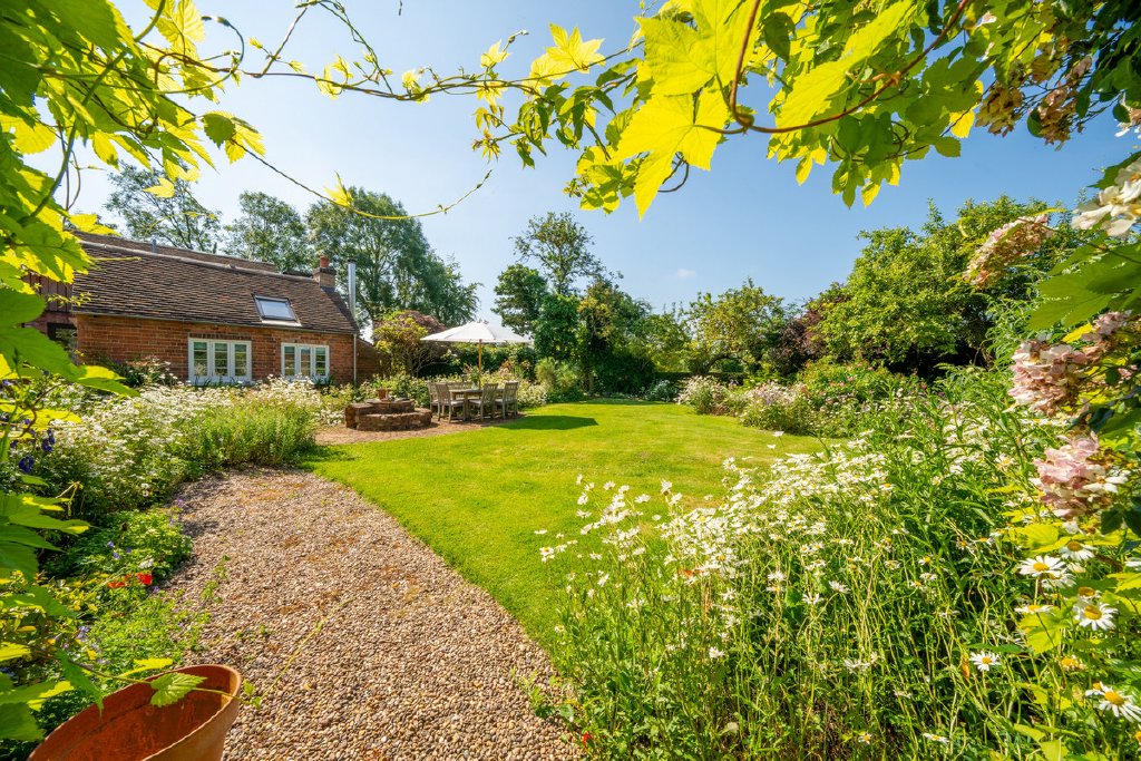 The property is set within approximately 0.5 acres of established, mature cottage gardens, rich in seasonal colour and framed by traditional planting. Beyond lies a further secure paddock of approximately one acre, complete with three stables and its own independent vehicular access — perfectly suited to equestrian or lifestyle use.