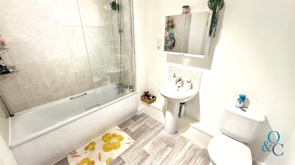 To the first floor are the two double bedrooms and bathroom suite which comprises: low level w/c, panel bath, pedestal wash hand basin and heated towel rail.
