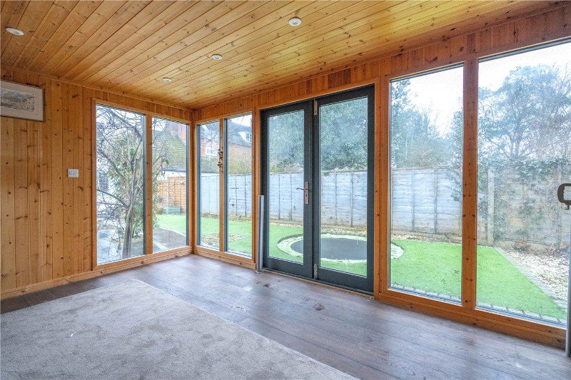 13'2 x 9'2 a fantastic addition, supplied and fitted by Crane Garden Buildings with UPVC French doors and glazed panels, power and light connected finished with an engineered wood floor, currently a studio, offering many possibilities to work from home.