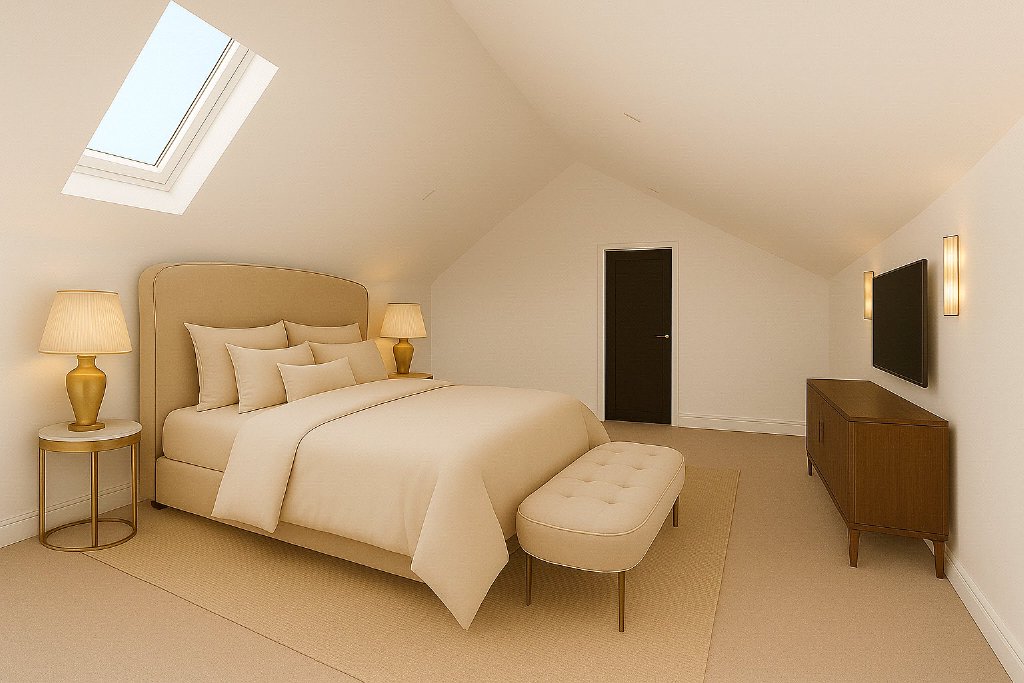 A second staircase leads to the top floor, where two further double bedrooms are located. One enjoys access to a private balcony overlooking the rear garden and features space for a walk-in wardrobe and a stylish en suite bathroom. The sixth bedroom, also generously proportioned, offers views across the garden and benefits from its own luxurious en suite, making this upper-level ideal for older children or guests.