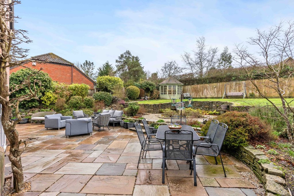 Two charming octagonal summerhouses, a tranquil pond and access to the rear of the garages complete this beautifully curated outdoor environment - a space designed for relaxation, reflection, and refined outdoor living.