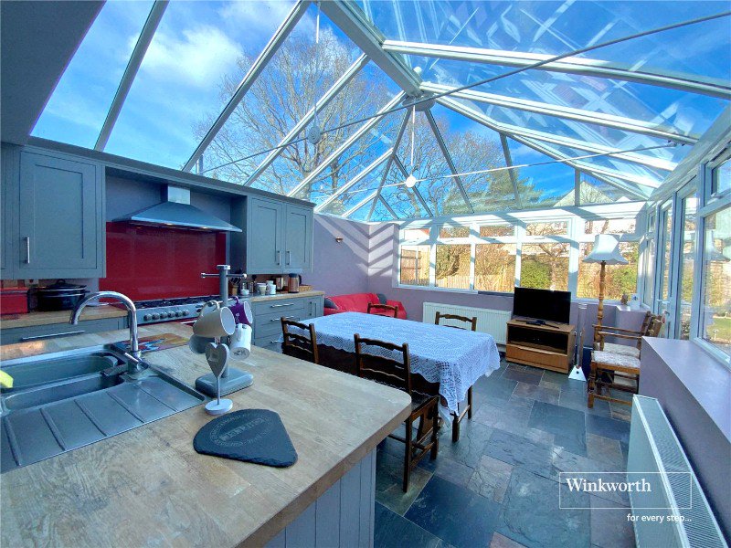 - Spectacular kitchen/family room with vaulted glass roof and doors opening onto the garden