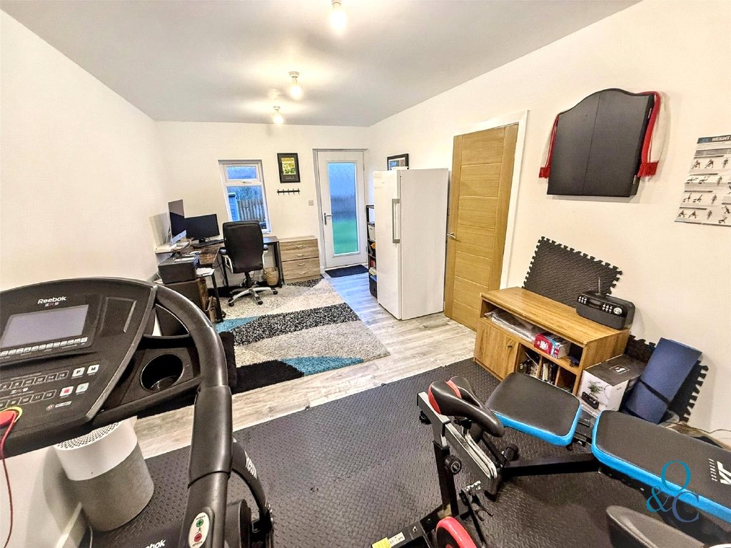 Unlike other properties of this design, the vendors had connected the living room with garden room to create a generous office/gym.
